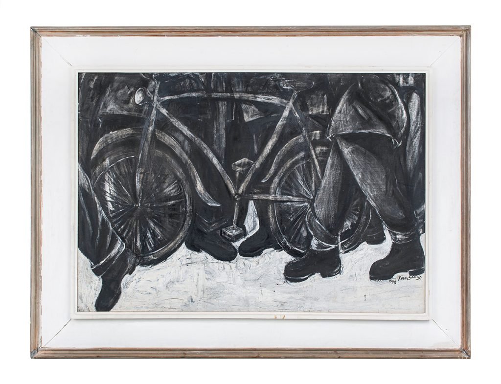 In the crowded streets of Cairo, people merge into each other and into their street bicycles, a common form of transportation of the working class.