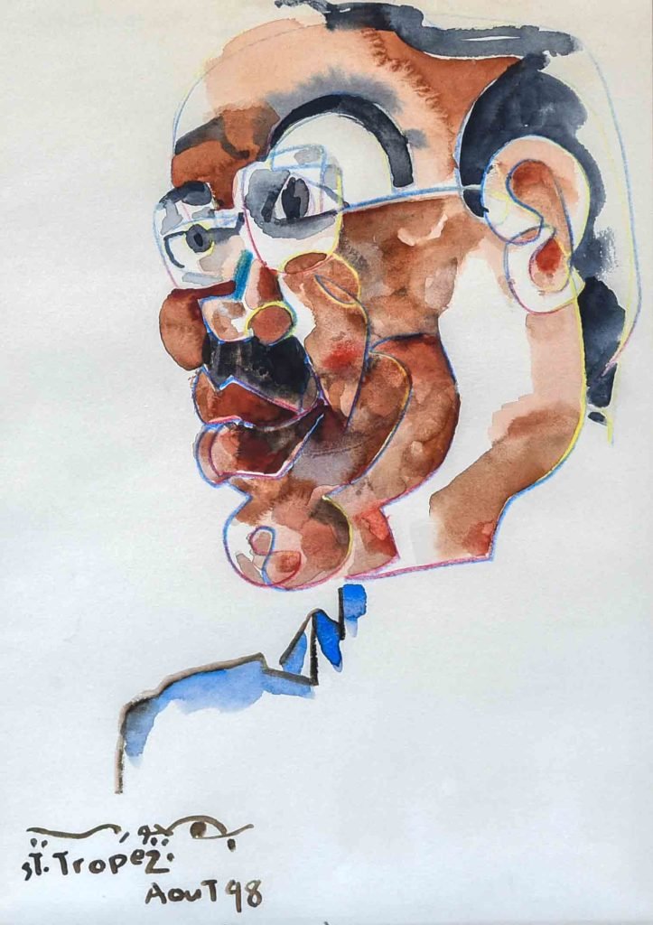 A portrait of Mohammed AlSharekh made with graphic fragments.